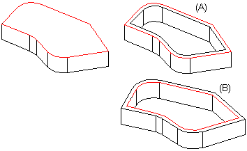 että valitun pinnan reunaviiva asettuu seinämän ulkoreunaksi. Kuva A. - Valitse