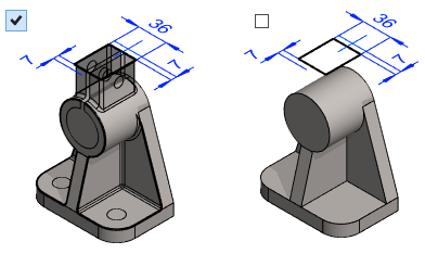 Varjostettuna läpinäkyvä- Kun osa on varjostettu, se piirretään läpinäkyvänä.