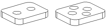 - Kuvassa ainetta poistavan piirteen luonnokseen on lisätty kaksi ympyrää. Piirteen muodostamisen jälkeen osassa on 4 reikää.