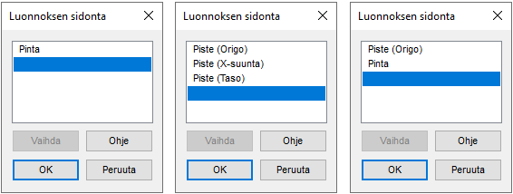 - Uusi sidontapinta on oltava samantyyppinen (taso, lieriö …)