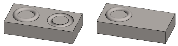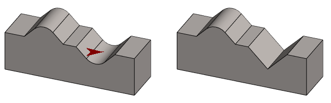 - Tällä valinnalla voidaan poistaa osasta syvennykset (kuopat) ja reiät, jotka eivät rajoitu kahteen vierekkäiseen pintaan.