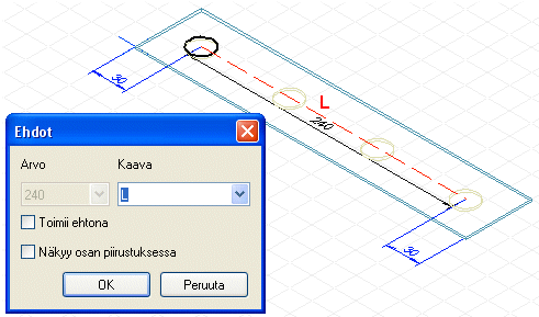 Esimerkiksi, jos piirteiden lukumäärä on 3, reiät sidotaan pituuteen 80 mm välein osan mitoista riippumatta.