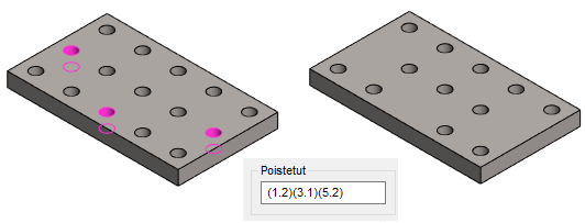 - Valitse yhden tai useamman poistettavan piirteen pinta osasta: