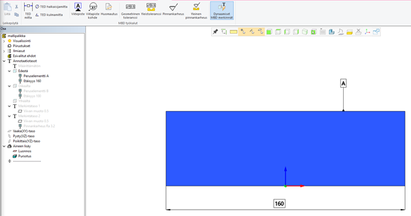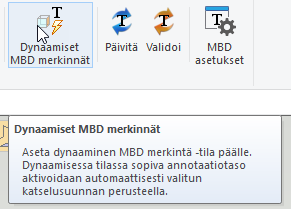 - Dynaamiset MBD merkinnät toiminnolla saadaan aktivoitua tila, jossa sopiva annotaatiotaso aktivoidaan automaattisesti valitun katselusuunnan perusteella.