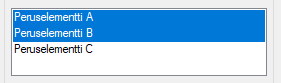 Peruselementin valinta tapahtuu listavalikosta. Peruselementtejä on mahdollista valita 0-3 kappaletta, yli meneviä valintoja ei lisätä. Valintajärjestyksellä on merkitystä ja yleisesti valintajärjestyksellä voidaan kuvata peruselementtien tärkeyttä, järjestykseksi tulee klikkausjärjestys.