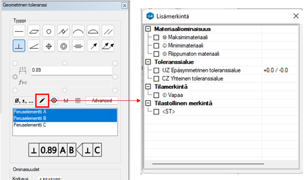 Geometisen toleranssin lisämerkintöihin kuuluvat:
