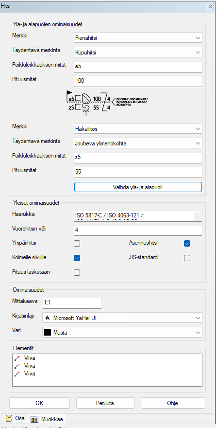 Lisää hitsimerkintä malliin