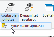 Tällä toiminnolla voi vaihtaa valitun tai valittujen mallien aputasojen näkyvyyden vastakohtaiseksi. Toiminto löytyy ribbonista, jolloin käyttäjää pyydetään valitsemaan malli, jolle kyseinen toiminto suoritetaan. Toiminto löytyy myös silloin, kun käyttäjä on valinnut malleja ja avaa hiiren oikealla näppäimellä listan komennoista.