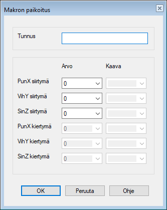 - Syötä tarvittavat siirtymät ja kiertymät.