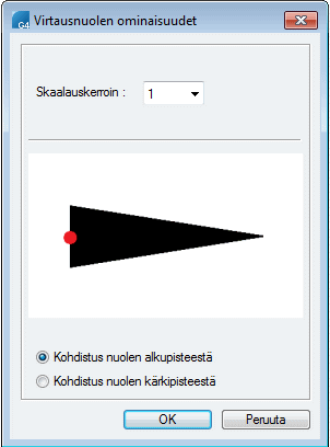 Lisää virtausnuoli Valitse välilehden Putkilinjat-ryhmästä Virtausnuolen lisäys. Valitse keskusteluikkunassa virtausnuolen ominaisuudet. Valitse OK.