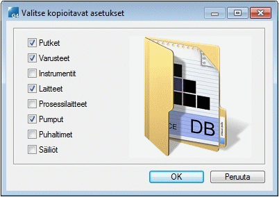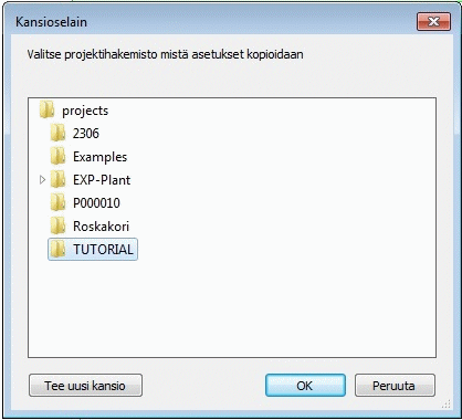 - Valitse toiminto Kenttien aktiivisuuksien kopiointi (ks.yläpuolella, kohta Kenttien aktiivisuuksien asetus). Valitse projektihakemisto mistä asetukset kopioidaan.