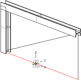 Lisätään profiiliosa osoittamalla kaksi pistettä. Valmiissa profiiliosassa on poikkileikkaus ja viiva, joka on 3D-luonnos. 3D-luonnos asettuu kahden osoitetun pisteen väliin ja luonnosviivaan lisätään automaattisesti Etäisyys-ehto.