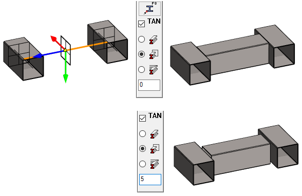 - Alempana raon arvoksi on annettu 5mm, joten profiili jää kummastakin päästään 5mm päähän pinnasta.