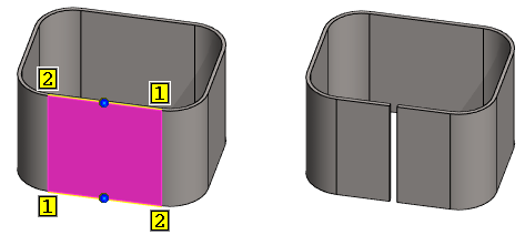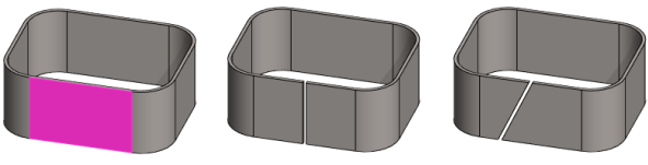 - Katkaisua varten osasta valitaan yksi pinta. Ohjelma valitsee tasopinnalta kaksi reunaviivaa, joiden avulla katkaisukohdan paikkaa ja suuntaa voidaan ohjata.