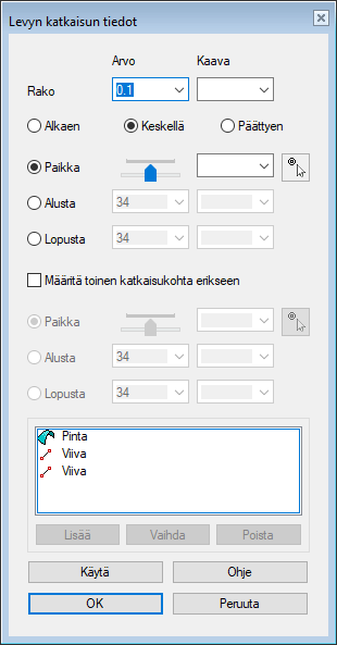 - Tasopinnalle voit määrittää katkaisukohdan erikseen myös toiselle reunaviivalle, jolloin