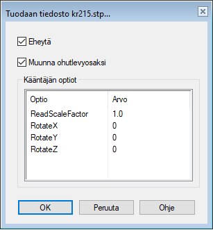 Jos tuodun mallin kaikki osuudet olivat tasapaksuja, niin