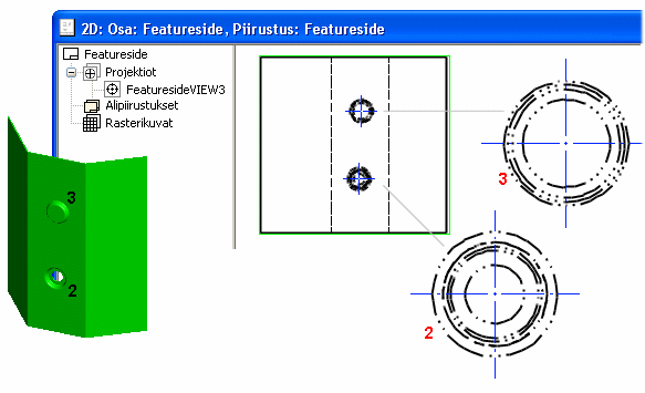Muovauspiirteen puoli näkyviin aukilevityspiirustukseen