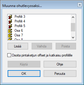 pintaketjun offset ja katkaisu profiilille.- Jos et valitse