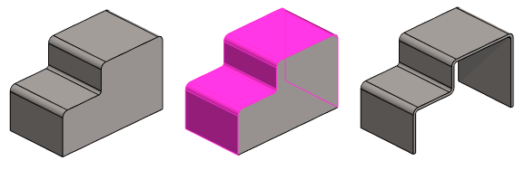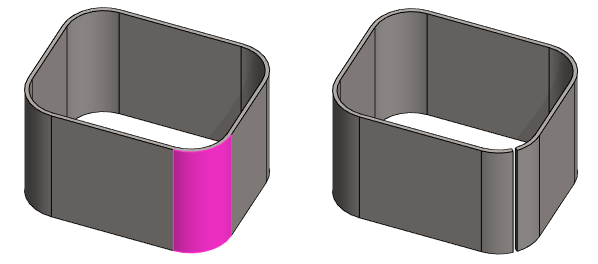 - Toimintoa käytetään silloin, kun 3D-aukilevitetyssä mallissa on tehty esim. taivutusalueelle poistava pursotus tai nurkka on trimmattu (kuvassa).