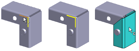- Voit lisätä trimmauspiirteen osan muokkaustilassa. Lisää trimmauspiirre ulkoisena referenssinä osoittamalla toisen trimmattavista reunoista toisesta ohutlevyosasta.
