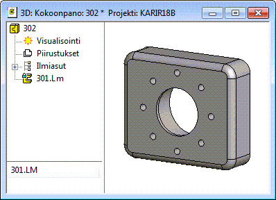 - Piirteellä työstetty osa havainnollistetaan kokoonpanopuussa tunnuksella: