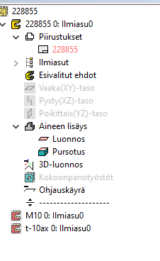 - Mikäli työstöjä on tehty useammalla kokoonpanotasolla, tällöin kokoonpanotyöstöpiirteitä on puussa yksi kutakin kokoonpanotasoa kohti.