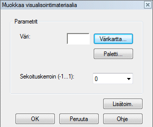 Visualisointi > Muokkaa materiaalia.- Ohjelma avaa keskusteluikkunan Muokkaa visualisointimateriaalia tai Muokkaa materiaalia.