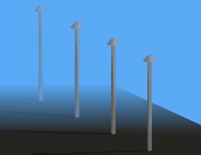 - Pintavaimeneminen (Surface attenuation) - Parametri vaikuttaa pintojen värien heikkenemiseen. Mitä suurempi arvo, sitä enemmän "sumu" imee valoa ja pinnat näkyvät mustempina. Arvoja on kokeiltava alkaen hyvin pienestä.