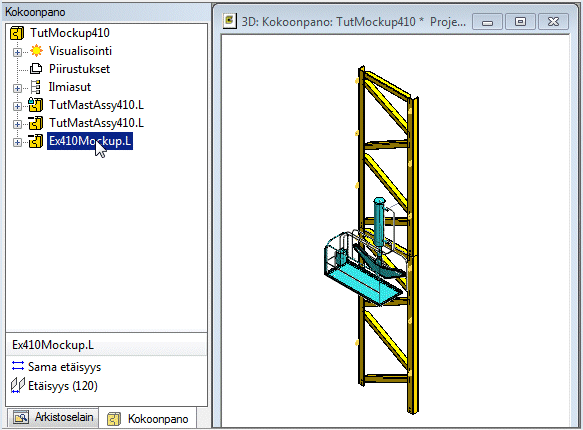 Esikatselemalla osaa tai alikokoonpanoa näet helposti, missä se sijaitsee ja millainen se on. Valitse joko osa tai alikokoonpano kokoonpanopuussa, jolloin siihen liittyvä geometria havainnollistetaan mallissa.