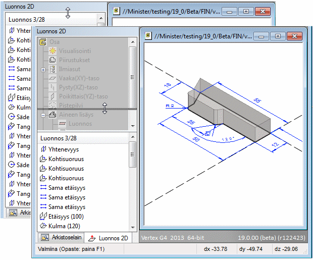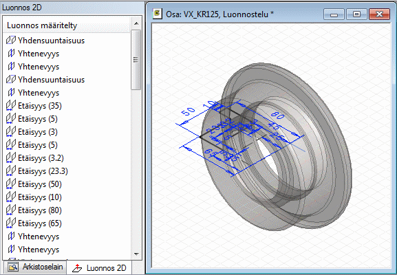 Geometristen ehtojen näkyminen osamallin luonnoksessa (3D)