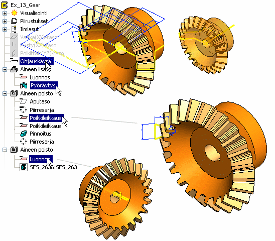 Esikatselemalla piirrettä tai luonnosta näet helposti, mitä kyseinen piirre tekee. Valitse joko piirre tai luonnos piirrepuussa, jolloin siihen liittyvä geometria havainnollistetaan mallissa.