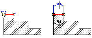 Voit lisätä mittaluvun vakioetäisyydelle viivasta tai pisteestä, jos lisäät mitan osoittamalla kaksi elementtiä. Osoita kaksi viivaa, kaksi pistettä tai viiva ja piste.