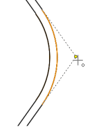 Mitoitus tangenttipisteeseen toimii kaarilla, joiden kulma on pienempi kuin 180 astetta.