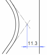 Mitta. - Vie kohdistin sisäkaaren puolelle. Kaaren keskipiste näkyy.