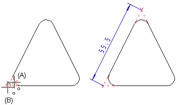 - Apuviivojen piirto tangenttipisteeseen voidaan sallia tai estää mitoituksen asetuksissa.