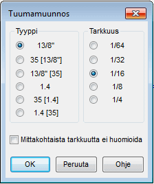 - Mittakohtainen tuumamuunnostarkkuus jätetään huomiotta, kun valintaruutu on valittu. Jos