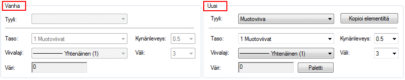 kyseessä on elementin uudet ominaisuudet. Ellei ominaisuuksia muokata, uusina