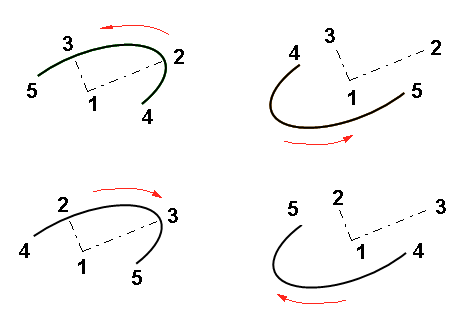 - Ellipsi piirtyy vastapäivään aloitus- ja lopetuspisteen väliin silloin, kun osoitat kehäpisteet vastapäivään.