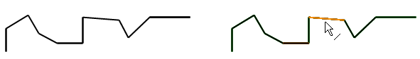 Yhtenäinen viiva ei ole valittu: Murtoviiva piirtyy erillisten viivojen ketjuna.