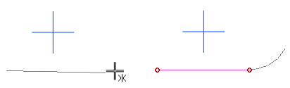 - Voit vaihtaa viivan aloitussuuntaa (tangentiaalinen tai kohtisuora) siirtämällä kohdistimen viivan aloituspisteen lähelle. Tämä vapauttaa kohdistimen suunnan.