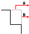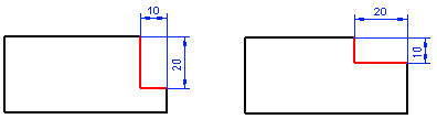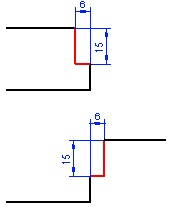 Määrittää loven mitan ensimmäisen suoran viivan osuudella nurkkapisteestä lähtien. Keskusteluikkunan kuvassa on kuvattu kirjainsymbolien merkitykset. Valitse sopiva arvo luettelosta, tai kirjoita mitan arvo kenttään.