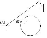 Voit asettaa kohdistimen kulkemaan kaarta sivuavan tangentin suuntaisesti, mutta tietyllä etäisyydellä kaaresta. Viivain voidaan valita käyttöön myös kesken viivan piirron.