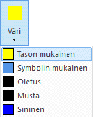 • Oletus - Järjestelmän asetuksissa määritetty tyylin tai ominaisuusryhmän oletusväri. On oletuksena käytössä, jos et ole valinnut mitään muuta väriä.