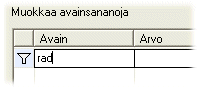 - Jos et tiedä mihin avainsanaryhmään avainsana kuuluu, voit hakea sitä koko avainsanajoukosta valitsemalla haun kohteeksi puunäkymän ylimmän tason Järjestelmän asetukset.