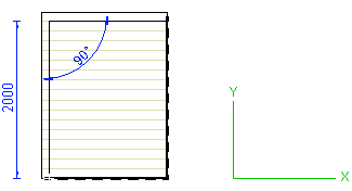 Suunta kiinnitettyMuokataan kulman arvoa, jolloin X-akselin suuntaisen seinän suunta muuttuu.