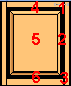 keskelle ylös, (5) keskelle, (6)