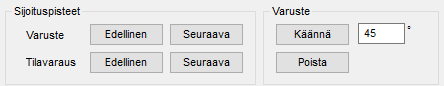 - Tarvittaessa voit kääntää varustetta sijoituspisteensä ympäri. Anna asteluku ja napsauta Käännä.