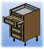 - Valitse Kalusteen muokkaus -keskusteluikkunassa välilehti Varustelu. Jos kaapissa on useampi laatikko, kullekin laatikolle on oma tilavaraus luettelossa. Kaapin ylin laatikko on luettelon ensimmäisellä rivillä.