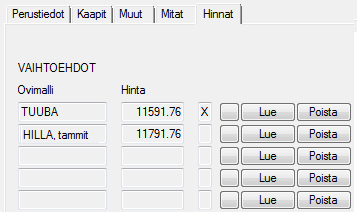 Valitse muu ovimalli, ja laske hinta uudelleen