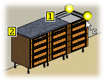 Voit siirtää tason päätä osoittamalla paikaksi kalusteen sivulevyn tai huoneen seinän. Osoita tason päätyjen paikat kuten tason lisäyksessä.